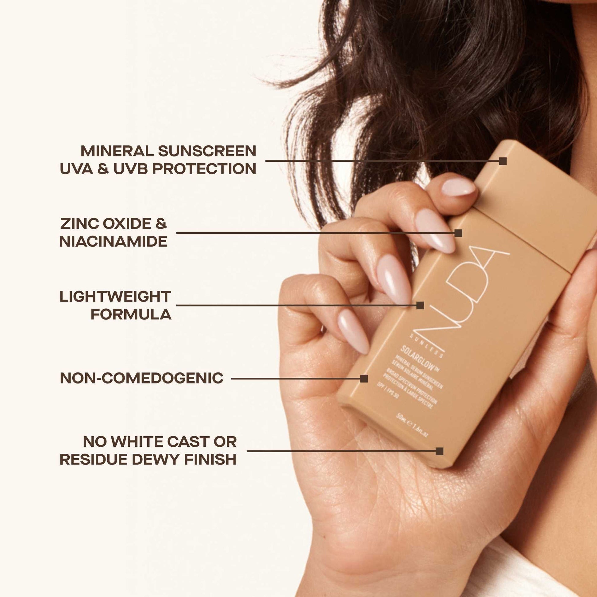 Zinc Oxide mineral sunscreen and illuminating serum with antioxidant Niacinamide and moisturizing Squalane to hydrate, plump and protect your glow.